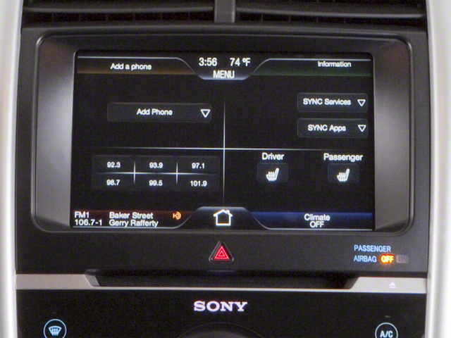12 Speakers, 18 Chrome-Clad Wheels, 20 Chrome-Clad Aluminum Wheels, 3.16 Axle Ratio, 4-Wheel Disc Brakes, ABS brakes, Adaptive Cruise Control & Collision Warning, Air Conditioning, Alloy wheels, AM/FM radio: SIRIUS, AM/FM Stereo w/Single CD/MP3/Navigation, Auto-dimming Rear-View mirror, Automatic temperature control, BLIS Blind Spot Information System, Brake assist, Bumpers: body-color, CD player, Compass, Delay-off headlights, Driver door bin, Driver Entry Package, Driver vanity mirror, Dual front impact airbags, Dual front side impact airbags, Electronic Stability Control, Exterior Parking Camera Rear, Four wheel independent suspension, Front anti-roll bar, Front Bucket Seats, Front Center Armrest w/Storage, Front dual zone A/C, Front reading lights, Fully automatic headlights, Garage door transmitter: HomeLink, Heated door mirrors, Heated front seats, High-Intensity Discharge Headlamps, Illuminated entry, Integrated SIRIUS Travel Link, Intelligent Access w/Push Button Start, Leather-Trimmed Heated Bucket Seats, Low tire pressure warning, Memory seat, Occupant sensing airbag, Outside temperature display, Overhead airbag, Overhead console, Panic alarm, Passenger door bin, Passenger vanity mirror, Perimeter Alarm, Power door mirrors, Power driver seat, Power Liftgate, Power passenger seat, Power steering, Power windows, Premium audio system: Sony, Radio data system, Radio: Sony AM/FM Stereo w/HD Radio/MyFord Touch, Rain Sensing Wipers, Rapid Spec 302A, Rear anti-roll bar, Rear Parking Sensors, Rear reading lights, Rear seat center armrest, Rear window defroster, Rear window wiper, Remote keyless entry, Remote Start, SIRIUS Satellite Radio, Speed control, Speed-Sensitive Wipers, Split folding rear seat, Spoiler, Steering wheel mounted audio controls, Tachometer, Telescoping steering wheel, Tilt steering wheel, Traction control, Trip computer, Variably intermittent wipers, Vision Package, Vista Roof.