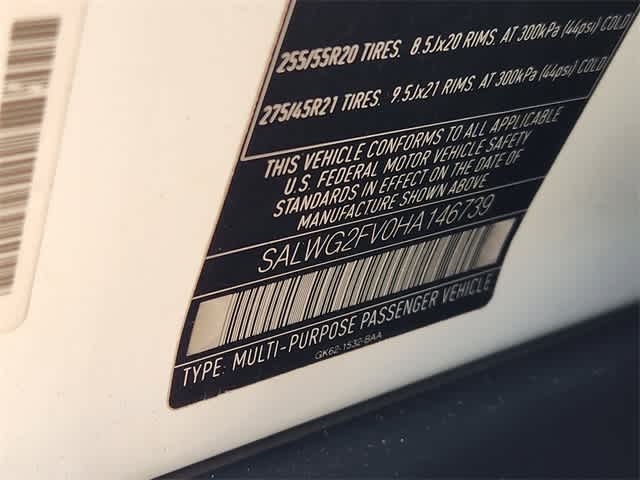 4-Wheel Disc Brakes, 8 Speakers, ABS brakes, Air Conditioning, Alloy wheels, AM/FM radio: SiriusXM, Auto tilt-away steering wheel, Auto-dimming Rear-View mirror, Auto-leveling suspension, Automatic temperature control, Brake assist, Bumpers: body-color, CD player, Compass, Delay-off headlights, Driver door bin, Driver vanity mirror, Drivers Seat Mounted Armrest, Dual front impact airbags, Dual front side impact airbags, DVD-Audio, Electronic Stability Control, Emergency communication system: InControl Protect, Exterior Parking Camera Rear, Four wheel independent suspension, Front anti-roll bar, Front Bucket Seats, Front Center Armrest, Front dual zone A/C, Front reading lights, Fully automatic headlights, Grained Leather-Trimmed Seats, Headlight cleaning, Heated door mirrors, High intensity discharge headlights: Bi-Xenon, Illuminated entry, Leather Shift Knob, Low tire pressure warning, Memory seat, Navigation System, Occupant sensing airbag, Outside temperature display, Overhead airbag, Panic alarm, Passenger door bin, Passenger seat mounted armrest, Passenger vanity mirror, Power door mirrors, Power driver seat, Power Liftgate, Power passenger seat, Power steering, Power windows, Radio data system, Radio: Range Rover Audio System, Rain sensing wipers, Rear anti-roll bar, Rear fog lights, Rear Parking Sensors, Rear reading lights, Rear seat center armrest, Rear window defroster, Rear window wiper, Remote keyless entry, Security system, Speed control, Speed-sensing steering, Speed-Sensitive Wipers, Split folding rear seat, Spoiler, Steering wheel memory, Steering wheel mounted audio controls, Tachometer, TBD Axle Ratio, Telescoping steering wheel, Tilt steering wheel, Traction control, Trip computer, Turn signal indicator mirrors, Variably intermittent wipers, Weather band radio, Wheels: 19 5 Split Spoke Alloy (Style 501).