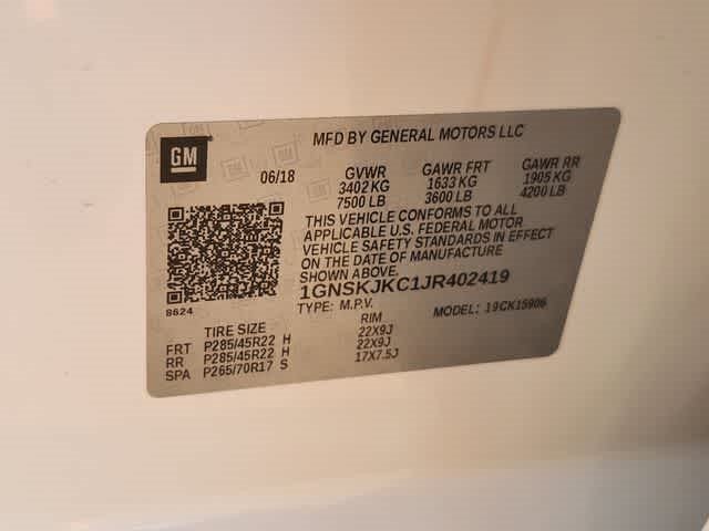 10 Speakers, 12-Volt Auxiliary Power Outlet (5), 1st & 2nd Row Color-Keyed Carpeted Floor Mats, 3.08 Rear Axle Ratio, 3rd Row 60/40 Power Fold Split-Bench, 3rd Row DVD Screen, 3rd row seats: split-bench, 4-Wheel Antilock Disc Brakes, 4-Wheel Disc Brakes, 6-Way Power Front Passenger Seat Adjuster, ABS brakes, Adaptive suspension, Adjustable pedals, Air Conditioning, All-Weather Floor Liner Package (LPO), Alloy wheels, AM/FM radio: SiriusXM, Apple CarPlay/Android Auto, Auto High-beam Headlights, Auto-dimming door mirrors, Auto-Dimming Inside Rear-View Mirror, Auto-dimming Rear-View mirror, Automatic temperature control, Black Assist Steps, Black Beltline Moldings, Black Mirror Caps, Black Nameplate Badging, Black Roof Rails, Body Security Content Theft-Protection Package, Body-Color Door Handles, Body-Color Headlamp Accents, Bodyside moldings, Bose Centerpoint Premium 10-Speaker Surround Sound, Brake assist, Bumpers: body-color, Cargo Security Shade (LPO), CD player, Color-Keyed Carpeting Floor Covering, Compass, Delay-off headlights, Driver door bin, Driver Inboard & Front Passenger Airbags, Driver vanity mirror, Dual front impact airbags, Dual front side impact airbags, Electronic Cruise Control w/Set & Resume Speed, Electronic Stability Control, Emergency communication system: OnStar Guidance, Enhanced Driver Alert Package, Exterior Parking Camera Rear, Floor Console w/Storage Area, Fog Lamps, Forward Collision Alert, Front & Rear Black Bow Ties, Front & Rear Park Assist, Front anti-roll bar, Front Bucket Seats, Front Center Armrest, Front dual zone A/C, Front fog lights, Front reading lights, Front wheel independent suspension, Fully automatic headlights, Garage door transmitter, Hands Free Power Liftgate, HD Radio, Headphones, Heated & Ventilated Driver & Front Passenger Seats, Heated & Ventilated Front Reclining Bucket Seats, Heated 2nd Row Outboard Seats, Heated door mirrors, Heated front seats, Heated Leather Wrapped Steering Wheel, Heated rear seats, Heated steering wheel, High-Intensity Discharge Headlights, Illuminated entry, Intellibeam Headlamps w/Automatic High Beam On/Off, Lane Change Alert w/Side Blind Zone Alert, Lane Keep Assist w/Lane Departure Warning, Leather Shift Knob, License Plate Front Mounting Package, Low Speed Forward Automatic Braking, Low tire pressure warning, Magnetic Ride Control Suspension Package, Memory seat, Memory Settings, Occupant sensing airbag, OnStar Basic Plan For 5 Years, Outside temperature display, Overhead airbag, Overhead console, Panic alarm, Passenger door bin, Passenger vanity mirror, Passive Entry System, Pedal memory, Perforated Leather-Appointed Seat Trim, Power door mirrors, Power driver seat, Power Folding & Adjustable Heated Outside Mirrors, Power Liftgate, Power passenger seat, Power Release 2nd Row Bucket Seats, Power steering, Power Tilt & Telescoping Steering Column, Power Tilt-Sliding Sunroof w/Express-Open/Close, Power windows, Power-Adjustable Accelerator & Brake Pedals, Preferred Equipment Group 1LZ, Push Button Keyless Start, Radio: Chevrolet MyLink AM/FM Stereo w/Navigation, Rain sensing wipers, Rear air conditioning, Rear anti-roll bar, Rear audio controls, Rear Cross-Traffic Alert, Rear reading lights, Rear Seat Entertainment System, Rear window defroster, Rear window wiper, Remote keyless entry, Remote Vehicle Start, Roof rack: rails only, Roof-Mounted Luggage Rack Side Rails, RST Edition, Safety Alert Seat, Security system, Single-Slot CD/MP3 Player, SiriusXM NavTraffic, SiriusXM Satellite Radio, Speed control, Speed-sensing steering, Split folding rear seat, Spoiler, Steering wheel memory, Steering wheel mounted audio controls, Sun, Entertainment & Destinations Package, Tachometer, Telescoping steering wheel, Theft-Deterrent Alarm System, Tilt steering wheel, Traction control, Trip computer, Turn signal indicator mirrors, Unique Gloss Black Sport Grille, Universal Home Remote, Variably intermittent wipers, Vehicle Inclination Sensor, Vehicle Interior Movem