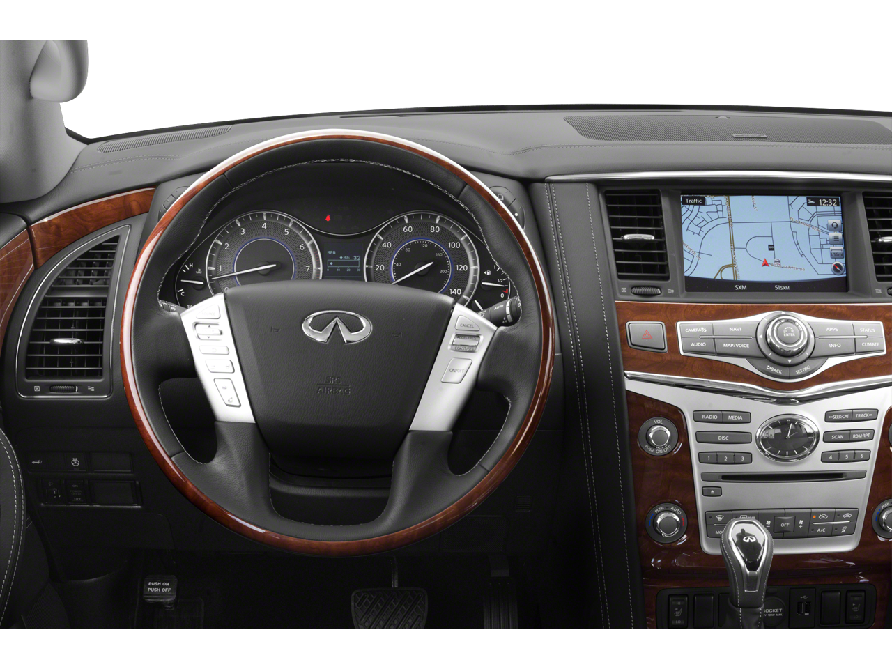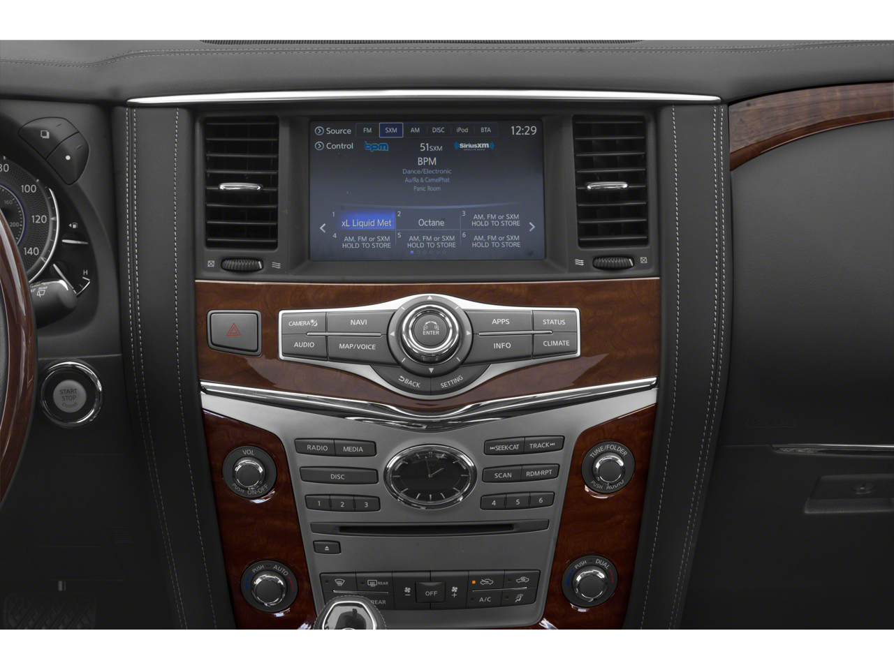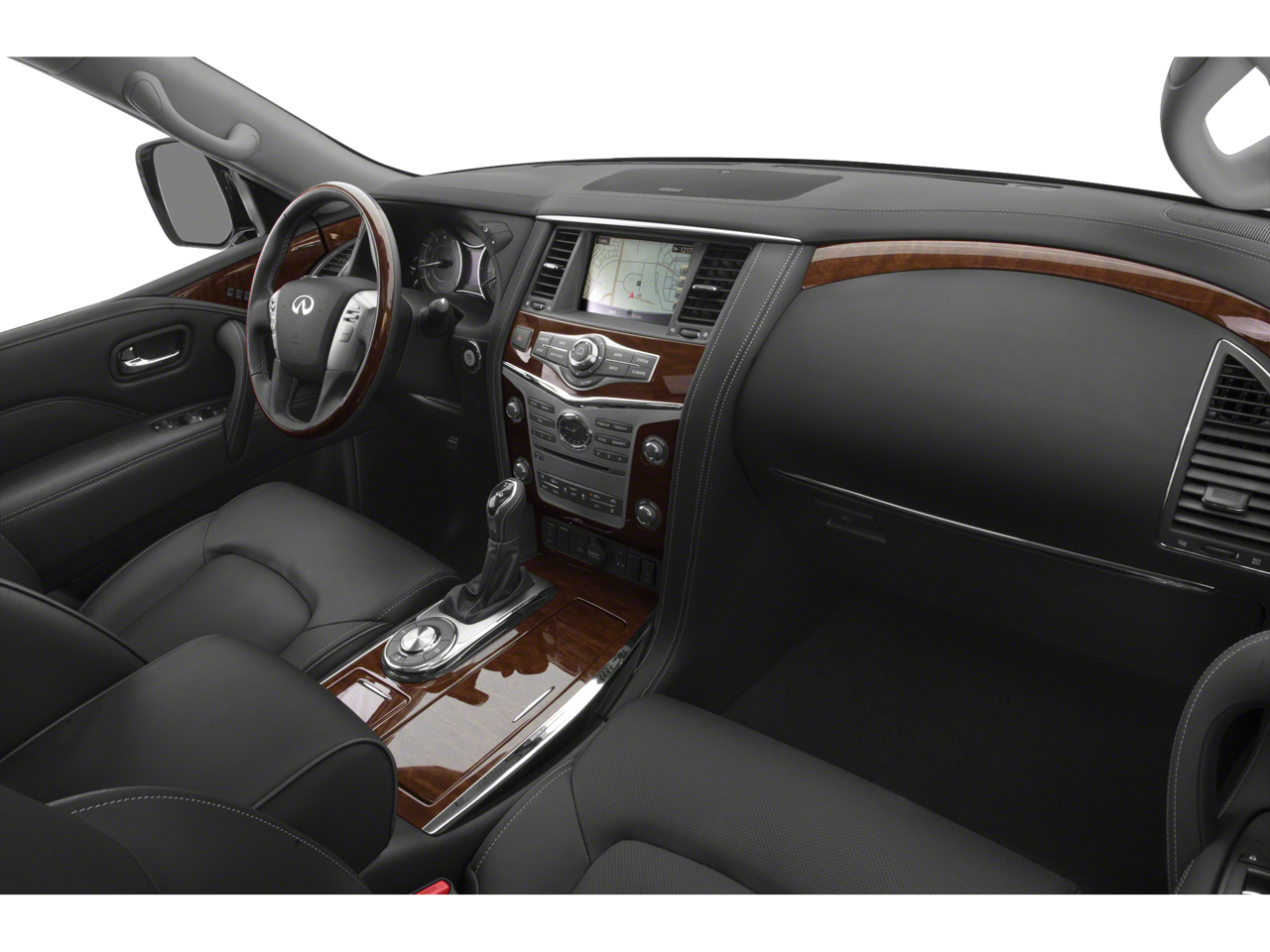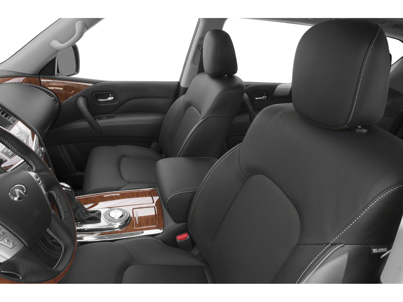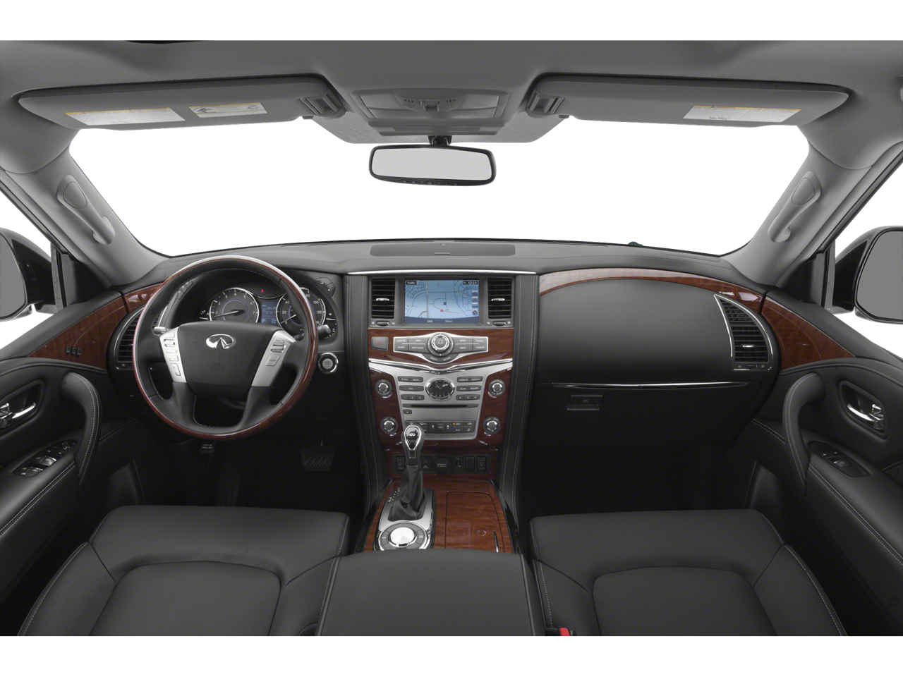 120V Power Outlet, 13 Speakers, 2.94 Axle Ratio, 22 Wheel Package, 3rd row seats: split-bench, 4-Wheel Disc Brakes, ABS brakes, Advanced Climate Control System, Air Conditioning, Alloy wheels, AM/FM radio: SiriusXM, Anti-whiplash front head restraints, Auto High-beam Headlights, Auto tilt-away steering wheel, Auto-dimming door mirrors, Auto-dimming Rear-View mirror, Auto-leveling suspension, Automatic temperature control, Backup Collision Intervention (BCI), Blind Spot Intervention (BSI), Blind Spot Warning, Bose Cabin Surround Sound System, Brake assist, Bumpers: body-color, Cargo Package, CD player, Charcoal/Espresso Burl Trim, Chrome Outside Mirror Caps, Climate-Controlled Front Seats, Delay-off headlights, Driver door bin, Driver vanity mirror, Dual 8 Color Monitors, Dual front impact airbags, Dual front side impact airbags, DVD-Audio, Electronic Stability Control, Emergency communication system: INFINITI Connection, First-Aid Kit, Four wheel independent suspension, Front anti-roll bar, Front Bucket Seats, Front Center Armrest, Front dual zone A/C, Front fog lights, Front reading lights, Fully automatic headlights, Garage door transmitter: HomeLink, Genuine wood console insert, Genuine wood dashboard insert, Genuine wood door panel insert, Heated 2nd-Row Seats, Heated door mirrors, Heated Front Bucket Seats, Heated front seats, Heated steering wheel, High-Density Non-Slip Rear Cargo Carpet, Illuminated entry, Intelligent Cruise Control (Full-Speed Range), Lane Departure Warning System, Leather Shift Knob, Leather steering wheel, Leather-Appointed Seats w/Stratford Burl Trim, Literature Kit, Low tire pressure warning, Memory seat, Navigation system: INFINITI InTouch Navigation, Nylon-Cord Cargo Net, Occupant sensing airbag, Outside temperature display, Overhead airbag, Overhead console, Panic alarm, Passenger door bin, Passenger vanity mirror, Power door mirrors, Power driver seat, Power Liftgate, Power moonroof, Power passenger seat, Power steering, Power windows, ProASSIST Package, Radiant Illuminated Kick Plates, Radio data system, Radio: AM/FM/HD w/Single In-Dash CD/DVD Player & MP3, Rain sensing wipers, Rear air conditioning, Rear anti-roll bar, Rear audio controls, Rear reading lights, Rear seat center armrest, Rear window defroster, Rear window wiper, Reclining 3rd row seat, Remote keyless entry, Roof rack: rails only, Roof Rail Cross Bars, Security system, Semi-Aniline Leather-Appointed Seating w/Quilting, Sensory Package, Speed control, Speed-sensing steering, Split folding rear seat, Spoiler, Steering wheel memory, Steering wheel mounted audio controls, Tachometer, Telescoping steering wheel, Theater Package, Tilt steering wheel, Traction control, Trip computer, Turn signal indicator mirrors, Variably intermittent wipers, Voltmeter, Wheels: 20 x 8.0 Aluminum-Alloy, Wheels: 22 x 8.0 14-Spoke Forged Aluminum-Alloy, Wireless Headphones (2). Clean CARFAX.