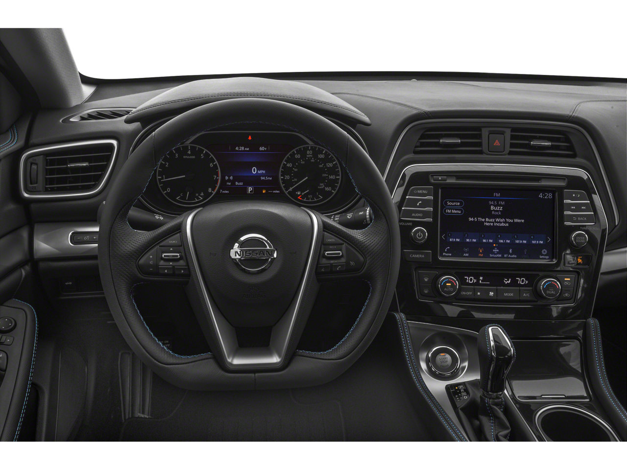 18 Machined Alloy Wheels, 4-Wheel Disc Brakes, 8 Speakers, ABS brakes, Air Conditioning, Alloy wheels, AM/FM radio: SiriusXM, Auto-dimming Rear-View mirror, Automatic temperature control, Blind Spot Warning, Brake assist, Bumpers: body-color, CD player, Compass, Delay-off headlights, Driver door bin, Driver vanity mirror, Dual front impact airbags, Dual front side impact airbags, Electronic Stability Control, Floor Mats, Four wheel independent suspension, Front anti-roll bar, Front Bucket Seats, Front Center Armrest, Front dual zone A/C, Front reading lights, Front Zero Gravity Heated Seats, Fully automatic headlights, Heated door mirrors, Heated front seats, Illuminated entry, Knee airbag, Leather-Appointed Seat Trim, Low tire pressure warning, Navigation System, NissanConnect featuring Apple CarPlay and Android Auto, Occupant sensing airbag, Outside temperature display, Overhead airbag, Overhead console, Panic alarm, Passenger door bin, Passenger vanity mirror, Power door mirrors, Power driver seat, Power passenger seat, Power steering, Power windows, Radio data system, Radio: AM/FM/CD Audio System w/Navigation, Rear anti-roll bar, Rear reading lights, Rear seat center armrest, Rear side impact airbag, Rear window defroster, Remote keyless entry, Security system, Speed control, Speed-sensing steering, Speed-Sensitive Wipers, Split folding rear seat, Sport steering wheel, Steering wheel mounted audio controls, Tachometer, Telescoping steering wheel, Tilt steering wheel, Traction control, Trip computer, Turn signal indicator mirrors, Variably intermittent wipers. Clean CARFAX.