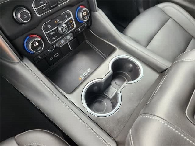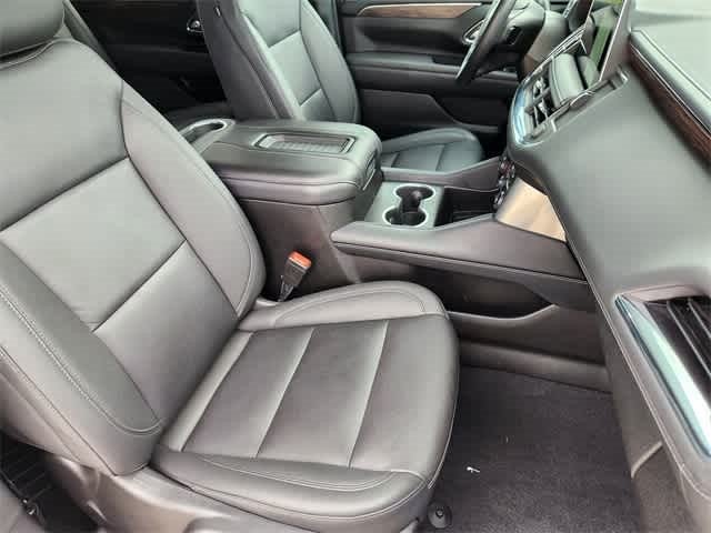 Black Leather, 10-Way Power Driver & Passenger Seat Adjusters, 1st & 2nd Row Color-Keyed Carpeted Floor Mats, 2nd Row Pwr Release 60/40 Split-Folding Bench Seat, 3rd Row 60/40 Power-Folding Split-Bench Seat, 3rd row seats: split-bench, 4-Wheel Disc Brakes, 9 Speakers, ABS brakes, Air Conditioning, Alloy wheels, AM/FM radio: SiriusXM with 360L, Apple CarPlay/Android Auto, Auto High-beam Headlights, Auto-Dimming Inside Rear-View Mirror, Auto-dimming Rear-View mirror, Automatic temperature control, Bose 9-Speaker Stereo Audio System Feature, Brake assist, Bright Front & Rear Door Sill Plates, Bumpers: body-color, Color-Keyed Carpeting Floor Covering, Compass, Delay-off headlights, Driver & Front Outboard Passenger Airbags, Driver Alert Package, Driver door bin, Driver vanity mirror, Dual front impact airbags, Dual front side impact airbags, Dual-Pane Power Panoramic Sunroof, Electronic Stability Control, Emergency communication system: OnStar and Chevrolet connected services capable, Enhanced Driver Information Center, Floor Console w/Storage Area, Four wheel independent suspension, Front anti-roll bar, Front Bucket Seats, Front Center Armrest, Front dual zone A/C, Front High-Back Reclining Bucket Seats, Front reading lights, Fully automatic headlights, Garage door transmitter, Hands-Free Rear Power Programmable Liftgate, HD Surround Vision, Heated 2nd Row Outboard Seats, Heated door mirrors, Heated Driver & Front Passenger Seats, Heated front seats, Heated Steering Wheel, Illuminated entry, Infotainment Display, Lane Change Alert w/Side Blind Zone Alert, Leather-Appointed Seat Trim, LED Daytime Running Lamps, License Plate Front Mounting Package, Low tire pressure warning, Luxury Package, Memory seat, Memory Settings, Memory Settings for Driver, Navigation System, Occupant sensing airbag, Outside Heated Power-Adjustable Mirrors, Outside temperature display, Overhead airbag, Overhead console, Panic alarm, Passenger door bin, Passenger vanity mirror, Power door mirrors, Power driver seat, Power Liftgate, Power passenger seat, Power Release 2nd Row Bucket Seats, Power steering, Power Tilt & Telescopic Steering Column, Power windows, Preferred Equipment Group 1LT, Premium audio system: Chevrolet Infotainment 3 Premium, Premium Smooth Ride Suspension, Radio: Chevrolet Infotainment 3 Premium System, Rain sensing wipers, Rear air conditioning, Rear anti-roll bar, Rear Cross Traffic Alert, Rear Pedestrian Alert, Rear reading lights, Rear seat center armrest, Rear window defroster, Rear window wiper, Remote keyless entry, Remote Start, Roof rack: rails only, Security system, SiriusXM Radio w/360L, Speed control, Speed-sensing steering, Split folding rear seat, Spoiler, Steering wheel mounted audio controls, Tachometer, Telescoping steering wheel, Tilt steering wheel, Traction control, Trip computer, Universal Home Remote, Variably intermittent wipers, Voltmeter, Wheels: 18 x 8.5 Bright Silver Painted Aluminum, Wheels: 22 Multi-Spoke Chrome (LPO), Wheels: 22 x 9 Steel Interim (LPO), Wireless Charging, Wrapped Steering Wheel. CARFAX One-Owner.