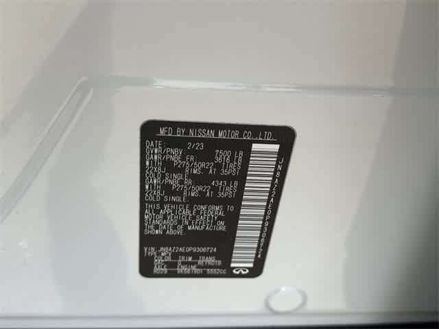 Certified. **Factory Certified Pre-owned Vehicle!, **Panoramic Moonroof!, **Navigation!, **Rear View Back-Up Camera!, **Back Up Warning Sensors!, **Blind Spot Technology, 13 Speakers, 2.937 Axle Ratio, 3rd row seats: split-bench, 4-Wheel Disc Brakes, ABS brakes, Air Conditioning, Alloy wheels, AM/FM radio: SiriusXM, Anti-whiplash front head restraints, Auto High-beam Headlights, Auto tilt-away steering wheel, Auto-dimming door mirrors, Auto-dimming Rear-View mirror, Auto-leveling suspension, Automatic temperature control, Brake assist, Bumpers: body-color, Cargo Net, Cargo Package, Carpeted Cargo Mat, Center Console Tray, Compass, Console Net, Delay-off headlights, Driver door bin, Driver vanity mirror, Dual front impact airbags, Dual front side impact airbags, Electronic Stability Control, Emergency communication system: INFINITI InTouch, First-Aid Kit, Four wheel independent suspension, Front anti-roll bar, Front Bucket Seats, Front Center Armrest, Front dual zone A/C, Front fog lights, Front reading lights, Fully automatic headlights, Garage door transmitter: HomeLink, Heated door mirrors, Heated Front Bucket Seats, Heated front seats, Heated steering wheel, Illuminated entry, INFINITI Radiant Illuminated Kick Plates, Leather Shift Knob, Leather steering wheel, Leather-Appointed Seats, Literature Kit, Low tire pressure warning, Memory seat, Midyear Change, Navigation system: INFINITI InTouch Navigation, Occupant sensing airbag, Outside temperature display, Overhead airbag, Overhead console, Panic alarm, Passenger door bin, Passenger vanity mirror, Power door mirrors, Power driver seat, Power Liftgate, Power moonroof, Power passenger seat, Power steering, Power windows, Premium audio system: Bose, Premium Select Graphite Interior, Radio data system, Radio: Bose Premium Audio System w/13 Speakers, Rain sensing wipers, Rear air conditioning, Rear anti-roll bar, Rear reading lights, Rear seat center armrest, Rear window defroster, Rear window wiper, Reclining 3rd row seat, Remote keyless entry, Roof Rail Cross Bars, Security system, Speed control, Speed-sensing steering, Split folding rear seat, Spoiler, Steering wheel memory, Steering wheel mounted audio controls, Tachometer, Telescoping steering wheel, Tilt steering wheel, Traction control, Trip computer, Turn signal indicator mirrors, Variably intermittent wipers, Voltmeter, Wheels: 22 x 8.0 Dark Chrome Cast Aluminum-Alloy. Clean CARFAX. CARFAX One-Owner.