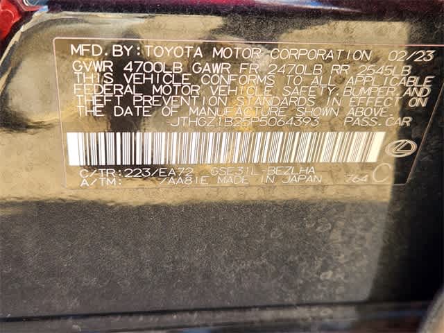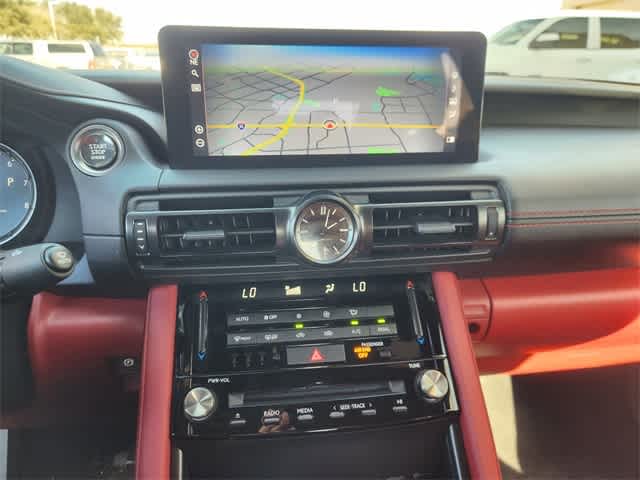 10 Speakers, 19 Wheels, 4-Wheel Disc Brakes, ABS brakes, Accessory Package, Accessory Package 2, Adaptive Variable Suspension, Air Conditioning, AM/FM radio: SiriusXM, Apple CarPlay/Android Auto, Ash Interior Trim, Auto High-beam Headlights, Auto-dimming door mirrors, Auto-dimming Rear-View mirror, Automatic temperature control, Brake assist, Bumpers: body-color, Carbon Fiber Rear Spoiler, Cargo Net, Carpet Trunk Mat, CD player, Compass, Delay-off headlights, Door Edge Film by 3M, Drive Mode Select, Driver door bin, Driver vanity mirror, Dual front impact airbags, Dual front side impact airbags, Electronic Stability Control, Emergency communication system: Safety Connect (3-year trial), Exterior Parking Camera Rear, F SPORT Heated Ash Wood-Trim Steering Wheel, Four wheel independent suspension, Front anti-roll bar, Front Bucket Seats, Front Center Armrest, Front dual zone A/C, Front fog lights, Front reading lights, Fully automatic headlights, Garage door transmitter: HomeLink, Handling Package, Heated & Ventilated F SPORT Seats, Heated door mirrors, Heated front seats, Heated steering wheel, Illuminated entry, Key Gloves, Knee airbag, Leather Shift Knob, Lexus Memory System for Drivers Seat, Low tire pressure warning, Memory Package, Moonroof, Navigation System, Occupant sensing airbag, Outside Mirrors w/Auto Tilt-Down in Reverse, Outside temperature display, Overhead airbag, Overhead console, Panic alarm, Passenger door bin, Passenger vanity mirror, Perforated NuLuxe Seat Trim, Power door mirrors, Power driver seat, Power passenger seat, Power steering, Power Tilt & Telescoping Steering Wheel, Power windows, Protection Package, Radio data system, Radio: Multimedia System w/8 Color Touchscreen, Rain sensing wipers, Rear anti-roll bar, Rear Bumper Applique, Rear reading lights, Rear seat center armrest, Rear side impact airbag, Rear window defroster, Remote keyless entry, Security system, Smart Access Card Key, Special Appearance Package, Speed control, Speed-sensing steering, Speed-Sensitive Wipers, Split folding rear seat, Spoiler, Sport steering wheel, Steering wheel mounted audio controls, Tachometer, Telescoping steering wheel, Tilt steering wheel, Torsen Limited Slip Differential (LSD), Traction control, Trip computer, Turn signal indicator mirrors, Variably intermittent wipers, Ventilated front seats. Clean CARFAX. CARFAX One-Owner.
