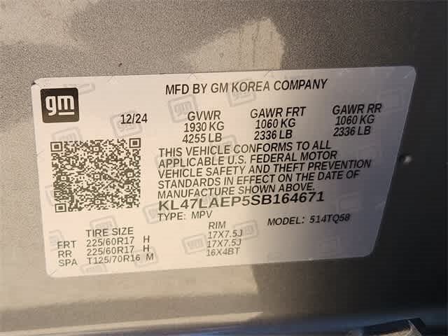 2 USB Ports (1 Type-A, 1 Type-C), 3.50 Final Drive Axle Ratio, 4-Way Manual Front Passenger Seat Adjuster, 4-Wheel Disc Brakes, 6 Speakers, 6-Way Manual Driver Seat Adjuster, ABS brakes, Air Conditioning, Alloy wheels, AM/FM radio: SiriusXM, Auto High-beam Headlights, Automatic temperature control, Brake assist, Bumpers: body-color, Cloth w/Leatherette Seat Trim, Compass, Delay-off headlights, Driver door bin, Driver vanity mirror, Dual front impact airbags, Dual front side impact airbags, Electronic Stability Control, Emergency communication system: OnStar, Exterior Parking Camera Rear, Front anti-roll bar, Front Bucket Seats, Front Center Armrest, Front reading lights, Front wheel independent suspension, Fully automatic headlights, Heated door mirrors, Illuminated entry, Low tire pressure warning, Occupant sensing airbag, Outside temperature display, Overhead airbag, Overhead console, Panic alarm, Passenger door bin, Passenger vanity mirror, Power door mirrors, Power steering, Power windows, Preferred Equipment Group G02, Premium 6-Speaker Audio System Feature, Radio data system, Radio: AM/FM Stereo Audio System, Rear Parking Sensors, Rear window defroster, Remote keyless entry, Security system, SiriusXM Trial Subscription, Speed control, Split folding rear seat, Steering wheel mounted audio controls, Tachometer, Telescoping steering wheel, Tilt steering wheel, Traction control, Trip computer, Turn signal indicator mirrors, Variably intermittent wipers, Wheels: 17 Bright Silver Painted Aluminum, Wireless Apple CarPlay/Wireless Android Auto. Clean CARFAX. CARFAX One-Owner.