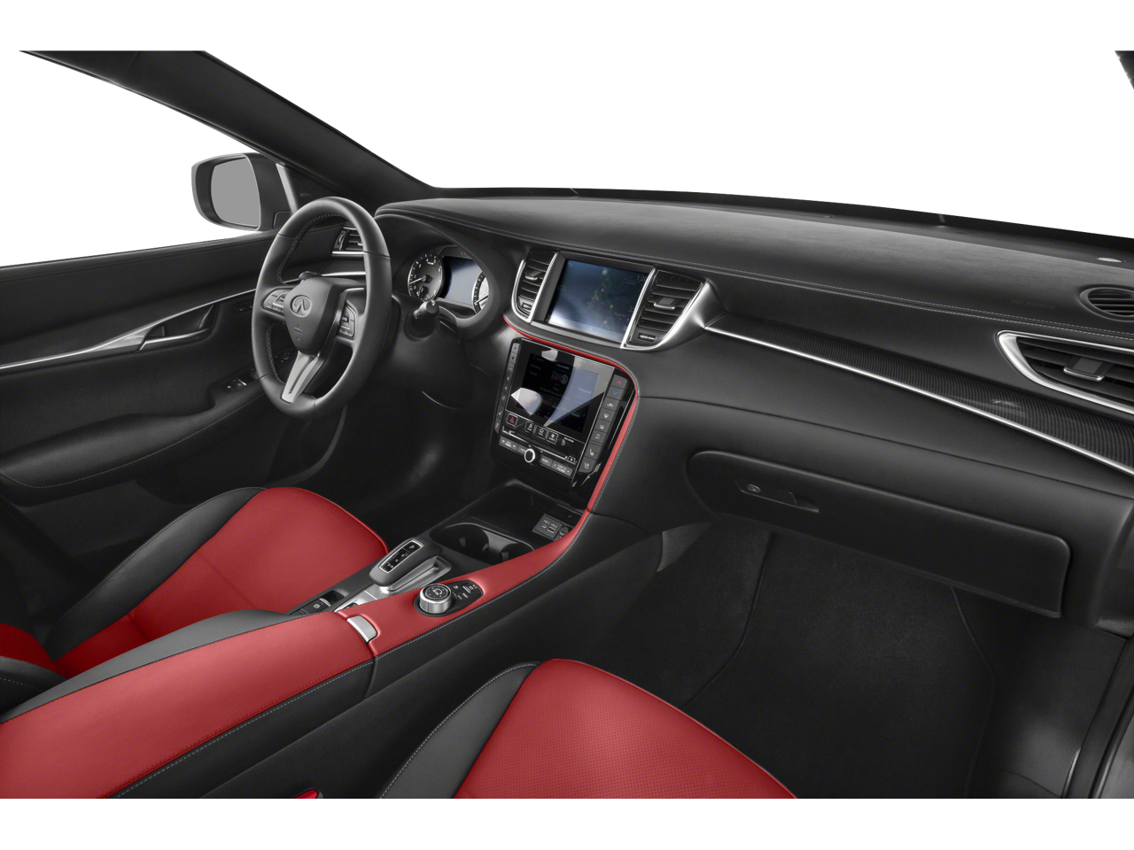 Leather Seats, Navigation, Sunroof, Panoramic Roof, All Wheel Drive INFINITI SPORT with Black Obsidian exterior and Monaco Red interior features a 4 Cylinder Engine with 268 HP at 5600 RPM*.