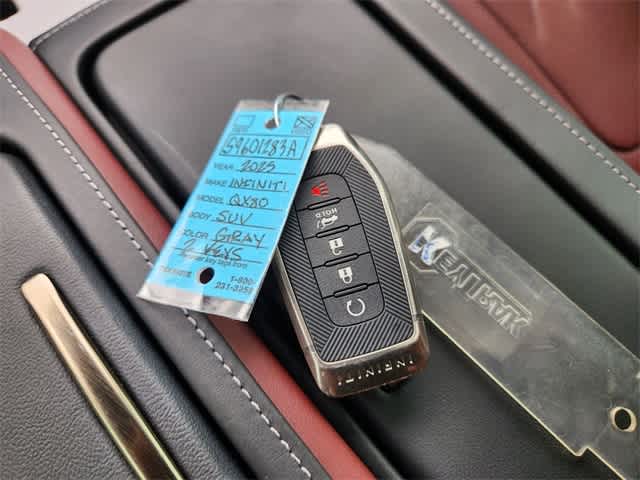 Certified. **Original MSRP $113,850!, **Factory Certified Pre-owned Vehicle!, **Panoramic Moonroof!, **Navigation!, **Rear View Back-Up Camera!, **Back Up Warning Sensors!, **Blind Spot Technology, 3rd row seats: bench, 4-Wheel Disc Brakes, ABS brakes, Adaptive suspension, Air Conditioning, Alloy wheels, AM/FM radio: SiriusXM with 360L, Anti-whiplash front head restraints, Apple CarPlay/Android Auto, Audio memory, Auto High-beam Headlights, Auto tilt-away steering wheel, Auto-dimming door mirrors, Auto-dimming Rear-View mirror, Auto-leveling suspension, Automatic temperature control, Brake assist, Bumpers: body-color, Cargo Blocks, Center Front Spoiler, Climate Controlled Front Bucket Seats w/Massage, Compass, Console Net, Delay-off headlights, Driver door bin, Driver vanity mirror, Dual front impact airbags, Dual front side impact airbags, Electronic Stability Control, Emergency communication system: INFINITI InTouch, Four wheel independent suspension, Front anti-roll bar, Front Bucket Seats, Front Center Armrest, Front dual zone A/C, Front reading lights, Fully automatic headlights, Garage door transmitter: myQ Connected Garage, Genuine wood dashboard insert, Genuine wood door panel insert, Heads-Up Display, Heated door mirrors, Heated front seats, Heated rear seats, Heated steering wheel, HVAC memory, Illuminated entry, Knee airbag, Leather steering wheel, Literature Kit, Low tire pressure warning, Memory seat, Navigation system: Google Built-in, Occupant sensing airbag, Outside temperature display, Overhead airbag, Overhead console, Panic alarm, Passenger door bin, Passenger vanity mirror, Power door mirrors, Power driver seat, Power Liftgate, Power moonroof, Power passenger seat, Power steering, Power windows, Premium Cargo Package, Premium Paint, Radio data system, Radio: Klipsch Reference Premiere Audio System, Rain sensing wipers, Rear air conditioning, Rear anti-roll bar, Rear reading lights, Rear seat center armrest, Rear window defroster, Rear window wiper, Reclining 3rd row seat, Remote keyless entry, Reversible Cargo Mat, Security system, Semi-Aniline Premium Leather Seating Surfaces, Smart Luggage Shelf, Soft Sided Cooler, Speed control, Speed-sensing steering, Splash Guards, Split folding rear seat, Spoiler, Steering wheel memory, Steering wheel mounted audio controls, Tachometer, Telescoping steering wheel, Tilt steering wheel, Traction control, Trip computer, Turn signal indicator mirrors, Variably intermittent wipers, Ventilated front seats, Ventilated rear seats, Wheels: 22 x 8 Cast Aluminum Alloy. CARFAX One-Owner.